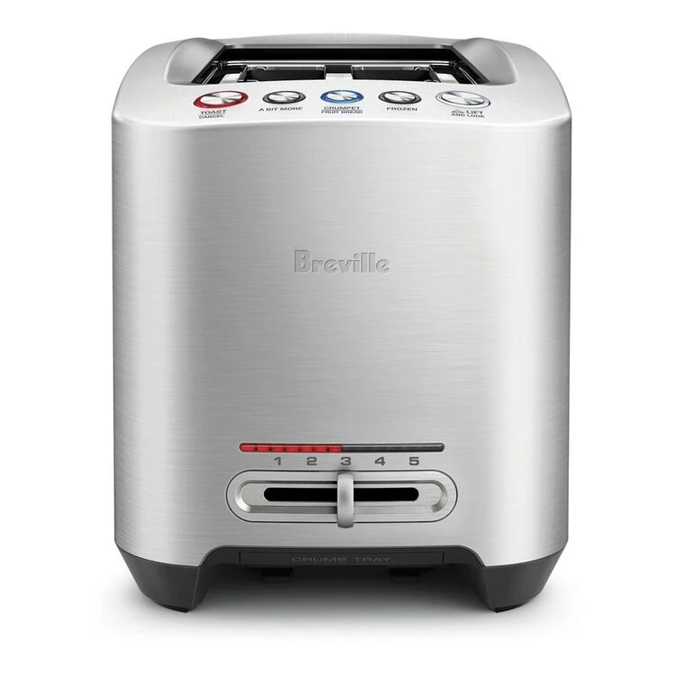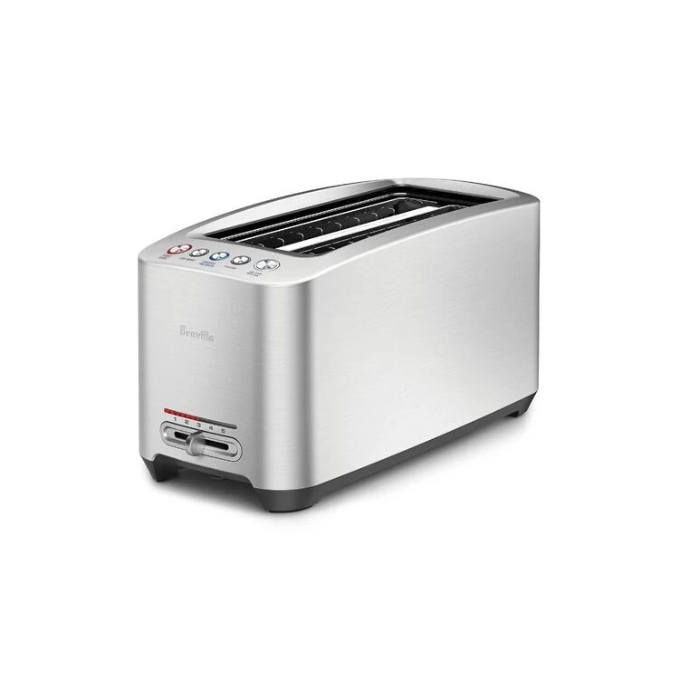 This premium Breville The Smart Toast 4 Slice Long Slot Toaster BTA830Bss features a sleek, modern die-cast steel construction and elegant 1-touch automation. A range of 5 toasting settings and 4 slice capacity allows you to customize to find your perfect level of crunch. A ‘Lift and Look’ functionality raises the motorized carriage and if you think it needs ‘A Bit More’ that’s an option too.
