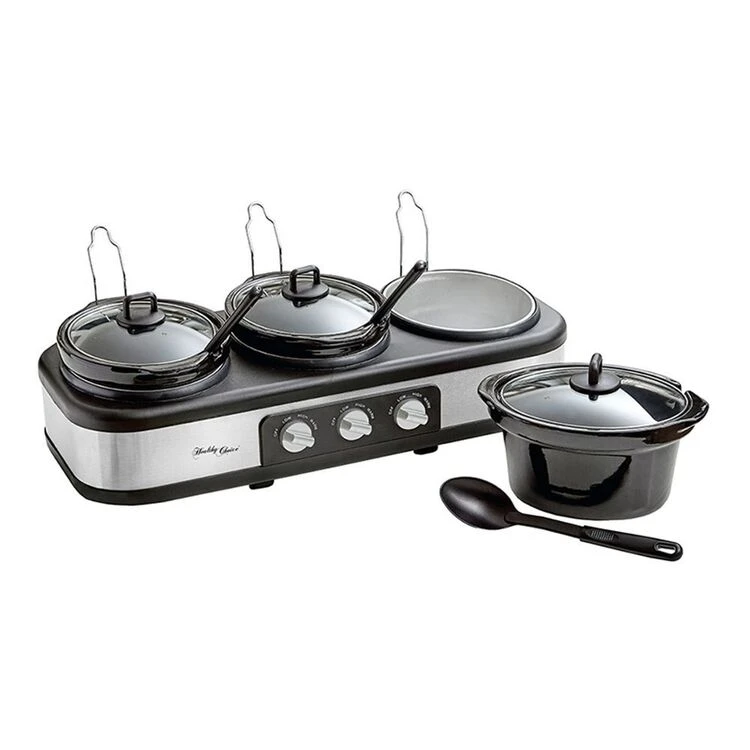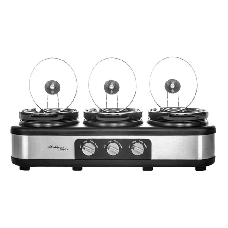 The Healthy Choice 3 Pot Slow Cooker is the energy-efficient, lower-powered cooking solution you’ve been looking for, designed to serve up healthy, nutritious, full-flavoured home cooked meals at the press of a button! Enjoy tenderised meats, curries, soups, stews, casseroles, risottos, pastas, and so much more cooked to perfection– just the way you like it! Featuring 3 removable non-stick ceramic pots each with its own independent control knob, adjust to perfectly tenderise a wide variety of meals. The meat will fall right off the bone and be sure to satisfy everyone at the dinner table, with plenty of cooking pot capacity to serve seconds.