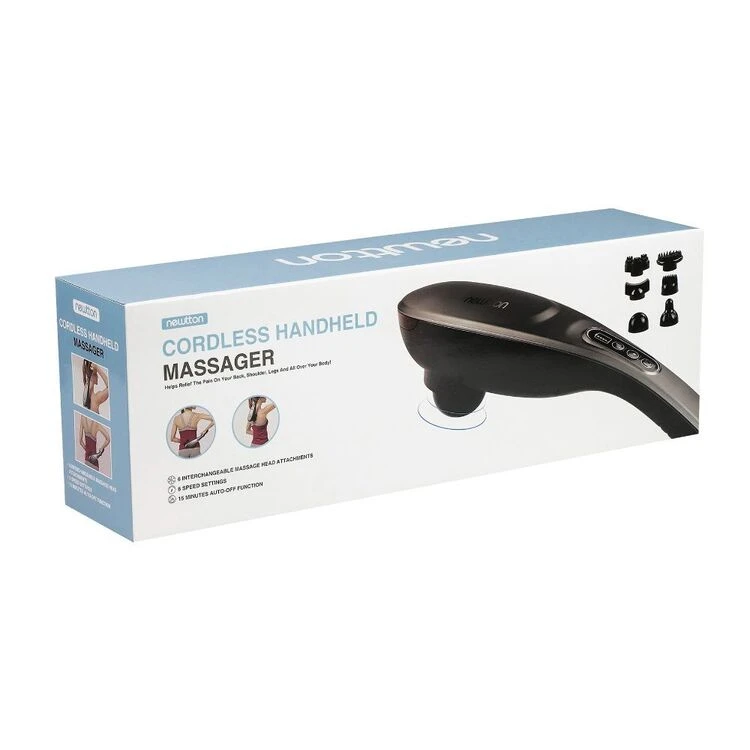 The Newtton Cordless Handheld Massager provides portable and convenient relief any time and any where you need it. It features 6 interchangeable massage heads, 6 different massage modes, and 6 intensity levels, fully adjustable to provide exactly the care you need. A convenient cordless design allows for easy manoeuvrability.