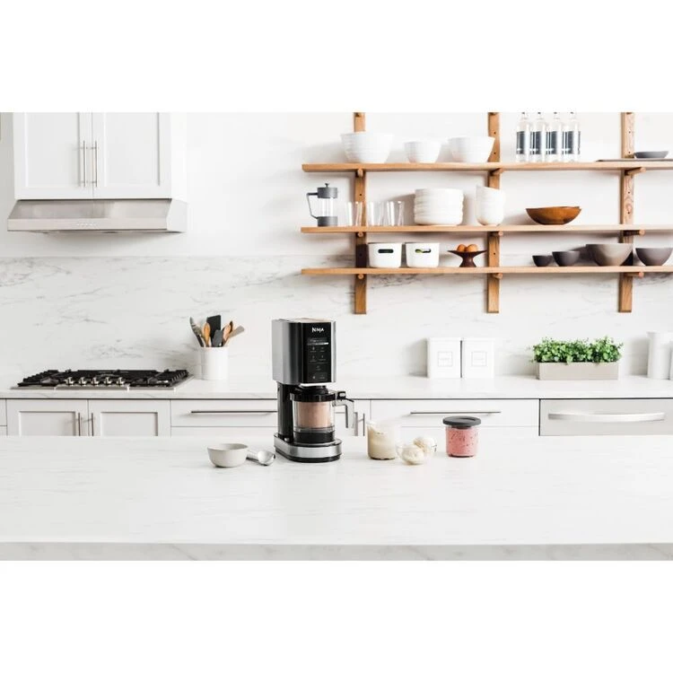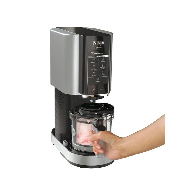 Create your favourite ice cream, sorbets, milkshakes and other frozen desserts at home with the Ninja CREAMi Ice Cream Maker. Transform frozen solid bases in three easy steps: simply prep your base, freeze overnight and process at the touch of a button. Ninja Creami Ice Cream Maker has 7 One-Touch programs that allow for the perfect combination of speed, pressure, and time to completely shave through your frozen tub.