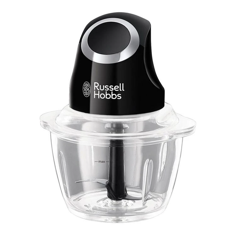 Chop, slice and puree fruits, vegetables and more with the touch of a button using this Russell Hobbs Copper Black, a quick and easy kitchen essential that makes dinner time a breeze! A 1 litre glass bowl with 500mL food capacity ensures generous space for all of your ingredients, while an intuitive one-touch operation makes this Chopper wonderfully easy to use.