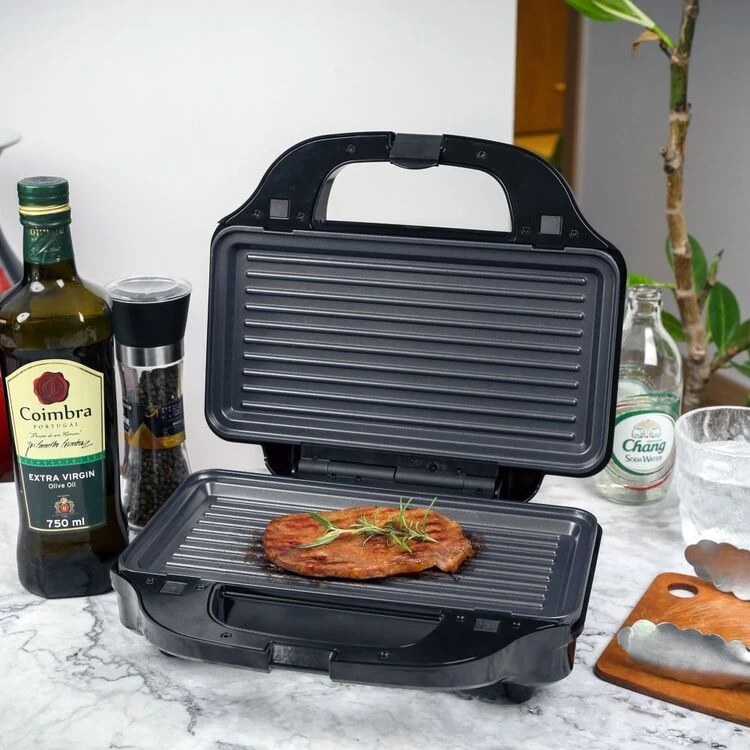 Enjoy breakfast, lunch or dinner, whether it be cheesy hot toasties, fresh golden waffles, or juicy grilled steaks and much more with the Smith & Nobel Sandwich Press With 3 Interchangeable Plates SNSM03! With three interchangeable non-stick cooking plates, you can choose from the dual sandwich plate, dual waffle plate or grilling plate set for meals throughout the day from breakfast to dinner, including a mid-morning, afternoon, or late night toastie snack! The interchangeable non-stick cooking plates can be detached and washed in warm soapy water as opposed to a traditional sandwich press with the standard built-in sandwich cooking plates. Shop the Smith & Nobel range today at Harris Scarfe!