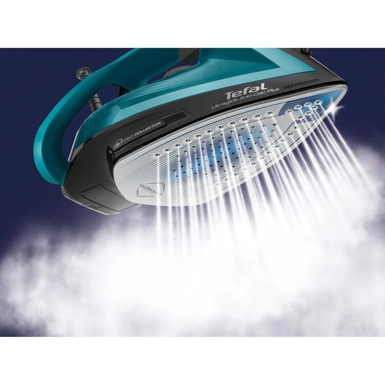 The Tefal Ultraglide Plus Anti-Calc Steam Iron FV5873 offers easier ironing sessions day after, with results you can count on and performance that’s built to last. Effortless maintenance and long-lasting performance are within reach, with the exclusive removable calc collector system ensuring easy cleaning and longer product life. The smooth-gliding Durilium Airglide soleplate is scratch resistant and durable, with 100 percent active steam holes for maximum steam coverage. Give your garment care experience an upgrade with 2400W of power for a quick heat-up time, an auto-off feature for everyday ironing with total peace of mind, a continuous steam output of up to 45 g/minute to ensure high-efficiency ironing sessions, and a steam boost of up to 185 g/minute to tackle thicker fabrics and stubborn creases. Also, the steam and soleplate kills up to 99.99 percent of viruses, bacteria and germs – helps to keep your family safe.